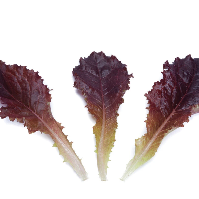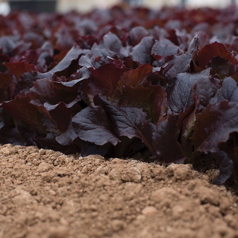 Bright, dark red leaf with ruffled margin and upright growth habit. Similar to a wavy romaine. Faster, loftier, and more upright than Tamarindo, with a juicier, more buttery texture. MT0-30.