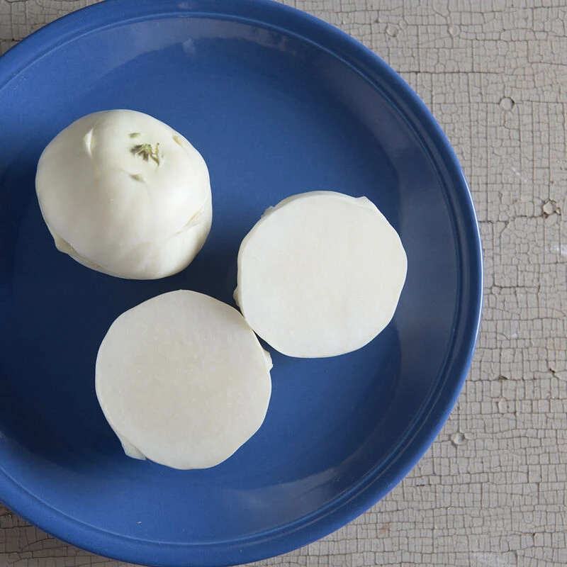 The first white kohlrabi. Beas is early and incredibly uniform. A real beauty with sweet, mild flavor and creamy internal color. Named for the Beas River in Northern India, where it was bred.
