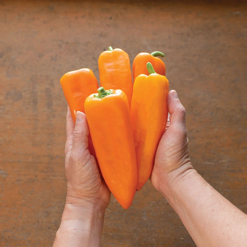 Our “Cornitos” or “little horns” are smaller versions of our traditional Italian Corno di Toro “bull’s horn” peppers Carmen and Escamillo. The trio of Cornito Giallo, Cornito Rosso, and Cornito Arancia are all of similar size, productive, attractive, and, most of all, of superior eating quality. They make excellent snacks eaten out of hand, sliced into salads, fried, and roasted. They are widely adapted and perform well both out of doors and in high tunnels. These peppers were bred by retired Johnny’s breeder and All-America Selections Breeder’s Cup recipient Janika Eckert.