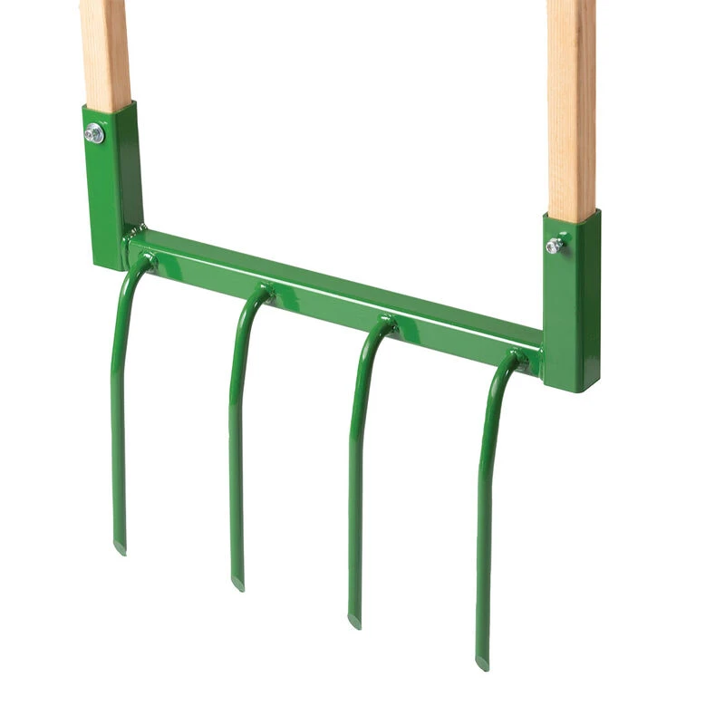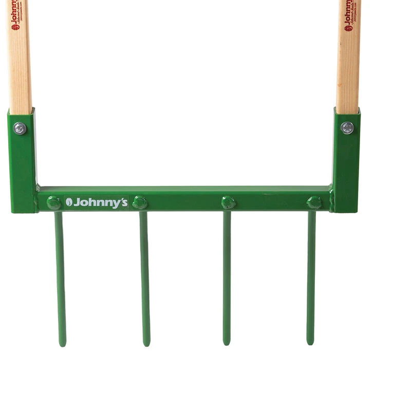 These deep-tillage tools, designed long ago in Europe and redeveloped by Eliot Coleman, are a favorite among Johnny’s customers. The design makes tilling your vegetable and flower gardens seem almost effortless because you are using your body weight to insert and maneuver the tool instead of your back and arms. Four curved tines, approximately 10 1/2″ long with 4″ spacing in between, and 48″ oiled ashwood handles allow you to cover a lot of ground quickly. These smartly-designed, high quality tools will be a pleasure to work with for years to come. Assembled weight: 9.75 lbs. Overall width: 20″. Made in Maine. Other sizes available to match your strength and comfort level.
