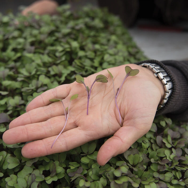 Mild cabbage flavor. Based on our yield trial, we recommend seeding 9.5 gm per tray at approx. 3 flats per oz of seed. Avg. days to maturity was 16 days when harvested at the first true leaf (as opposed to cotyledon) stage.