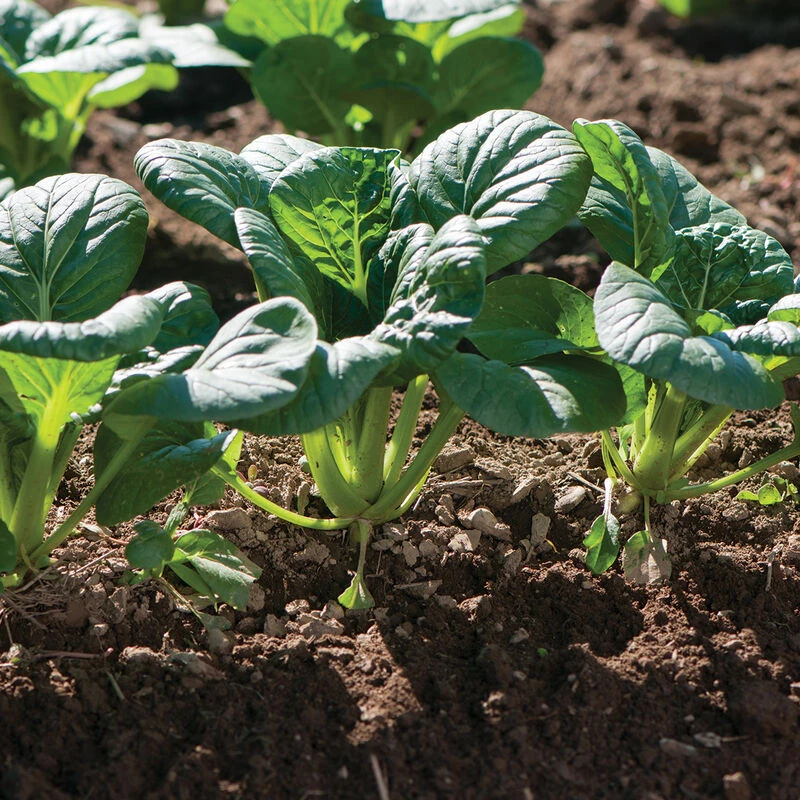 Dark green, hybrid tatsoi for bunching or baby leaf.