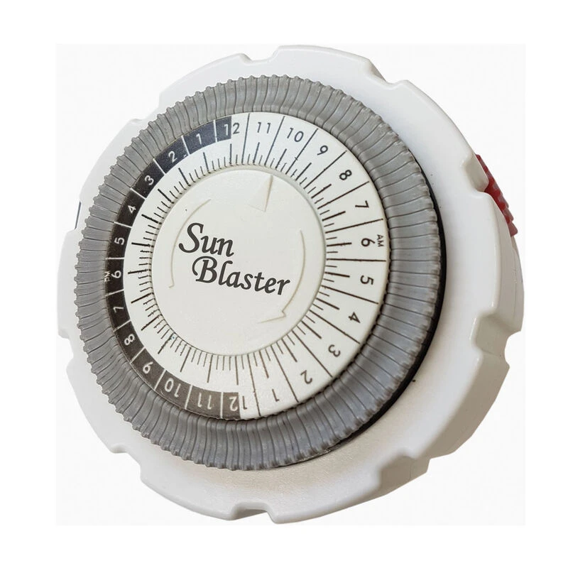 This manual 24-hour SunBlaster timer has twice the number of control pins compared to others on the market, allowing you to set your lighting regimen to 15 minute precision. Grounded outlet allowing for use with a wider variety of appliances. Override switch included.
