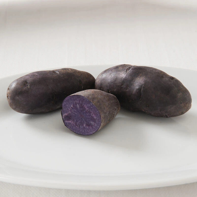 Purple through and through. From its dark purple skin to its dark purple flesh, Magic Molly retains its rich color when boiled. Its large tubers have an excellent earthy flavor, especially when roasted. USDA Certified Organic.