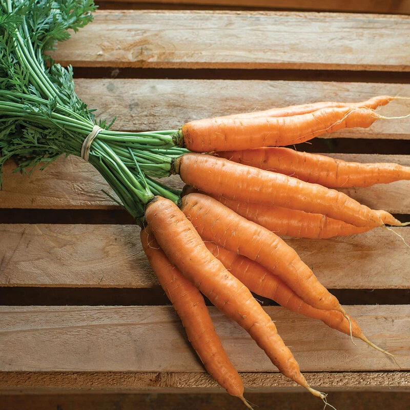 Straight, uniform, 7–9″ roots with blunted tips and strong, healthy tops compact enough for bunching. Good performance across many soil types. Compared to Nectar, the roots are longer, more uniform, and slightly drier and less flavorful. Plant habit is similar but the roots are later to blunt and size up. Also available in organic seed.