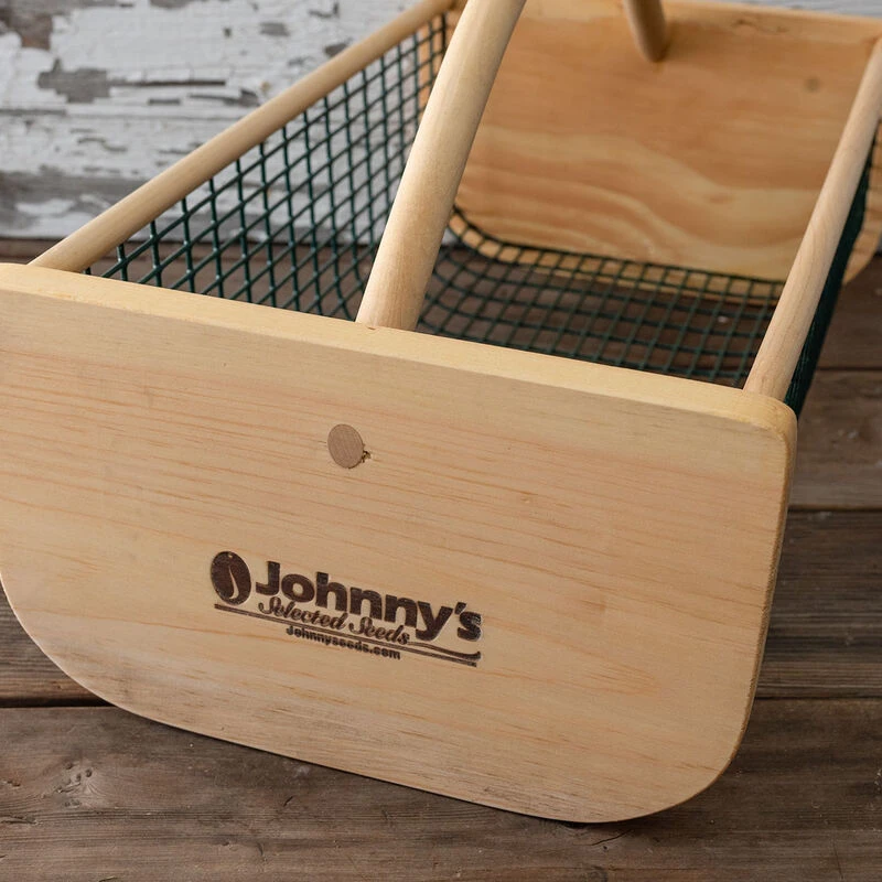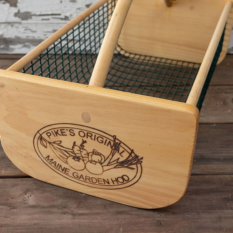 Originally used by New England clammers, the garden hod allows for harvesting and washing up to two pecks (16 quarts) of plants, fruits, and vegetables all in the same basket. Spray your harvest with a hose or dunk the whole hod in a larger container of water for most effective rinsing. Crafted in Maine with pine ends, birch dowels, a steam-bent oak handle and the same lobster trap wire as our compost bin – a durable stainless steel mesh, covered with food-grade vinyl. Weather resistant, hand-rubbed oil finish. Hundreds of other uses – both inside and out. They make great gifts any time of the year. Holds 2 pecks (16 quarts), basket is 19 1/4″L x 11″W x 7 1/4″ deep.