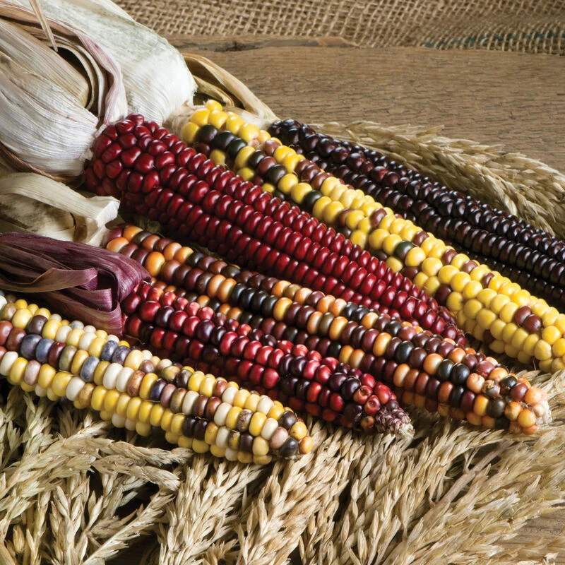 Developed for its hardiness, earliness, drought tolerance, and nutritional density in the mountains of Montana. Avg. 6–7″ multicolor ears for roasting or grinding into high-nutrition flour or hominy grits. Bred by Dave Christensen of Big Timber, MT from multiple Native American heirlooms. Avg. 4′ plants. USDA Certified Organic.