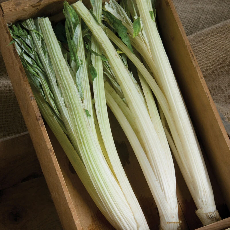 The midrib and leaf stalks of cardoon have a similar flavor to artichoke when boiled (not for eating raw). Both portions are commonly used as a side vegetable, addition to stuffing, or in soups and stews. Cardoon must be blanched before it can be eaten. To blanch, tie the stalks up firmly and wrap with black plastic or black and white newspaper. If left unharvested, the 3–4′ tall plants will produce large, purple, thistle-like flowers. The sharply lobed and serrated silver-green leaves are a unique addition to flower arrangements. Significantly reduced spines. Perennial in Zones 6–10.