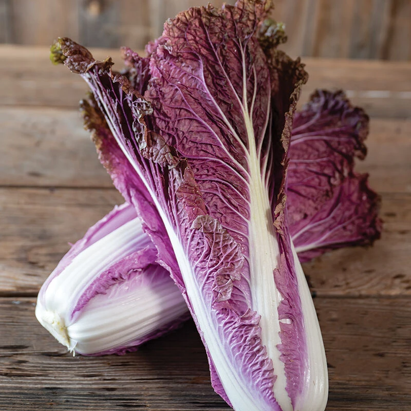 Tall, fancy, vibrant red heads avg. 11–12″ tall by 3–3 1/2″ wide. Good for salads, slaws, and attractive red kimchi. Similar color but much more slender than Merlot. NOTE: There are 4–5% green Napa-type off-types in this variety.