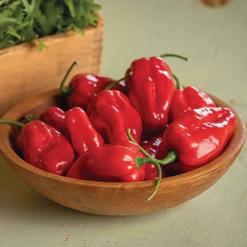 Another exciting addition to our “no heat” habanero lineup, Roulette imparts a sweet, floral flavor without the traditional fire expected from an habanero. The beautiful, bright red fruits avg. 3″ x 1 3/4″ and are borne on large, sturdy plants.