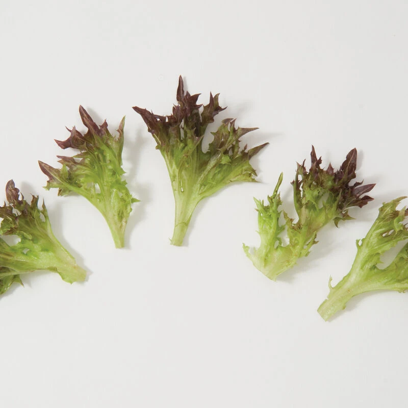 Double red leaves with a very defined, three-dimensional shape. Sweet, almost romaine-like flavor, with a crisp, almost iceberg-like texture. Large, heavy heads are slow to bolt. Suitable for mechanical harvesting. MT0-30. Pelleted seed.