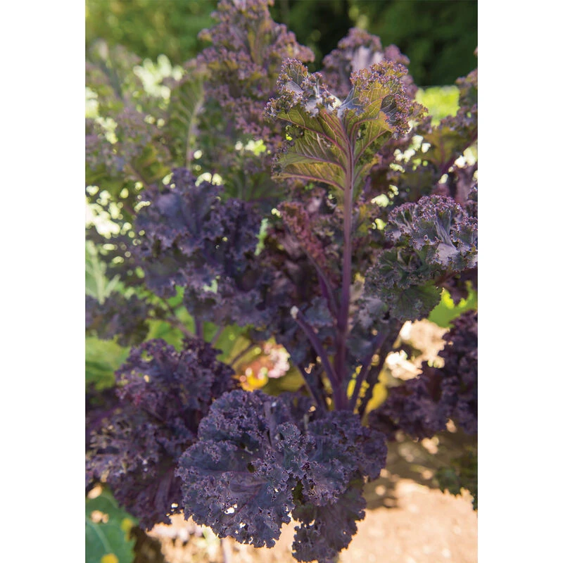 The broad, frilly, purple leaves grow on 2–3′ tall, upright stalks. Red color on a blue-green background, as compared to the red color on a bright green background of Redbor. Scarlet plant height is not quite as uniform as Redbor.