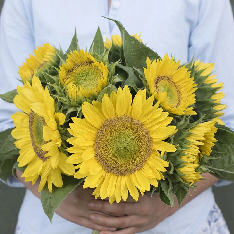 Bright, lemon-yellow petals surround a lime-green disk. This highly uniform series is great for succession planting with the ProCut® Series. 4–6″ bloom size. Pollenless. Single stem.