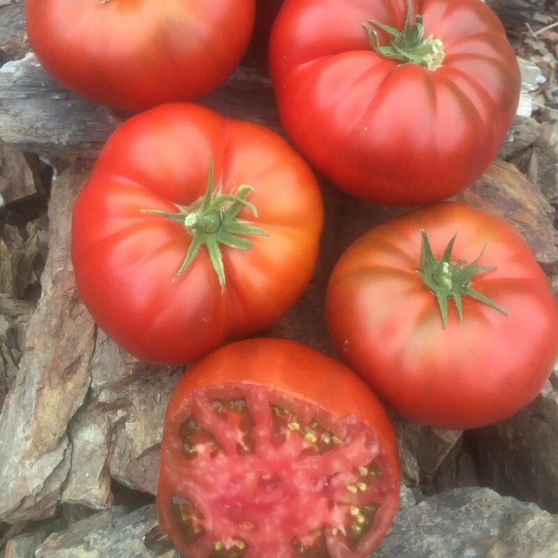 A small plant with abundant flavor, Tasmanian Chocolate retains the superior qualities of its heirloom parentage. Unlike traditional heirlooms, it is well-suited for patios and containers (owing to its tidy plant habit and short stature) and only needs a standard tomato cage for support. These burgundy 4–6 oz., ribbed tomatoes are richly flavored and perfect for slicing onto sandwiches. Developed by Craig LeHoullier as part of the Dwarf Tomato project. Determinate. USDA Certified Organic.