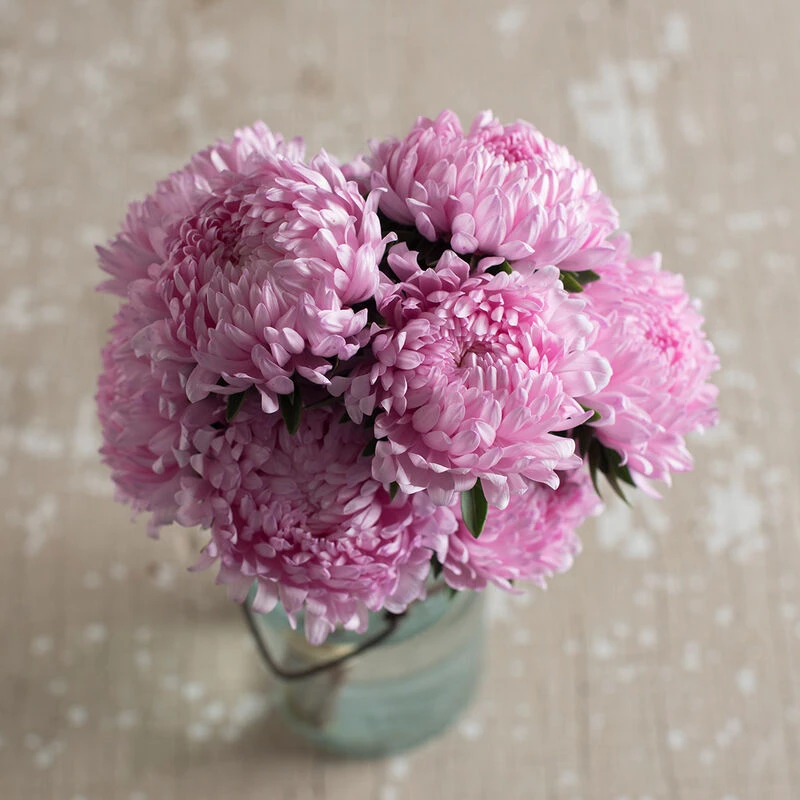 All the elegance and beauty of peonies and garden mums in an easy-to-grow annual. Salmon-pink colored blooms avg. 2–3″ with 13–20 stems per plant. Tower features uniform bloom time and plant height across the series and mix. Also known as summer aster.