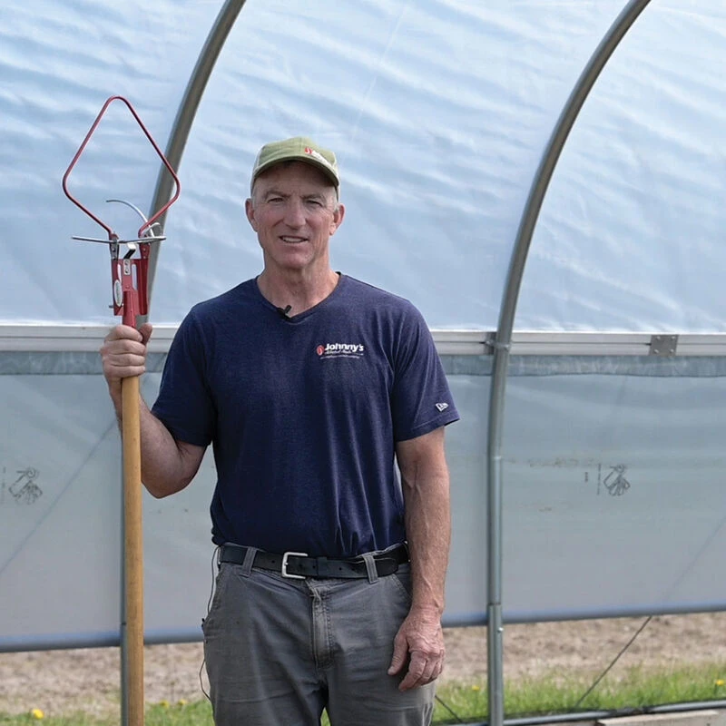 This innovative tool ties a knot in twine to make installing trellising quick and easy from the ground. Works with twine made from natural fibers (e.g., sisal, jute) or polypropylene. The smaller model (see #6305) is suitable for tying twine to trellis wire or cables. This larger model is needed for installing onto pipe up to 3/4″ in diameter. Made in France by Terrateck.